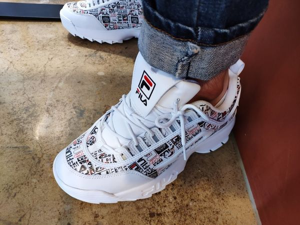 fila disruptor ii logo taping white shoes