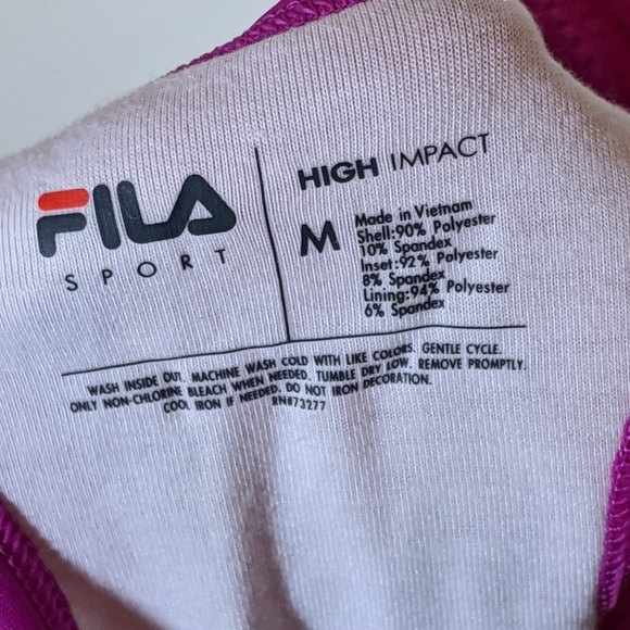fila sports bra size chart